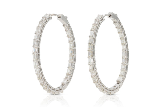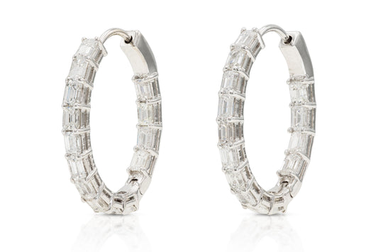 5.50 Carat Emerald Cut Diamond Oval Hoop Earrings