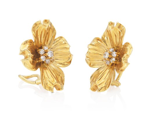 Vintage 1970s Gold Clover Earrings with Diamonds