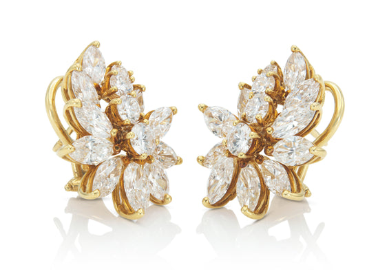 Vintage 1960s Cartier 8.70 Carat Diamond Cluster Earrings