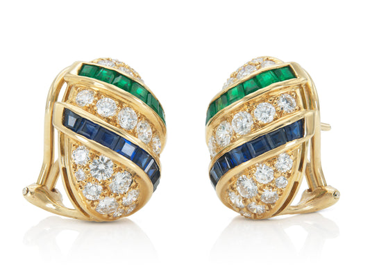 Oscar Heyman Diamond, Emerald & Sapphire Earrings