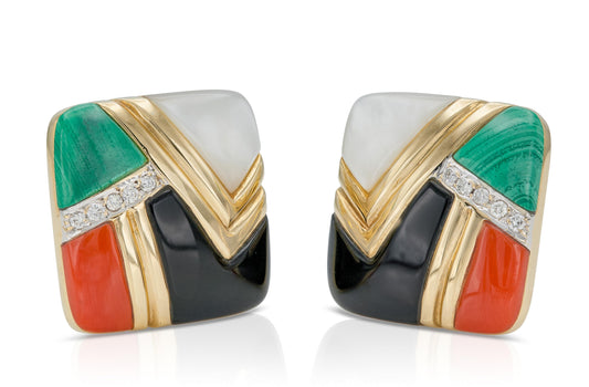 Vintage 1980s Multi-Gem Geometric Earrings