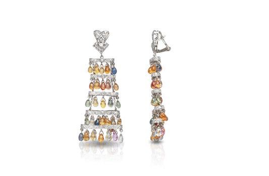 39.10 Carat Multi-Color Sapphire Chandelier Earrings with Diamonds
