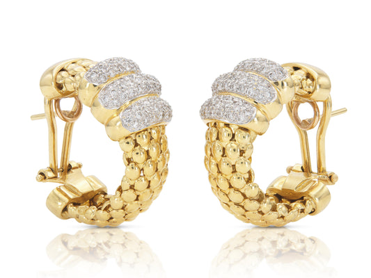 Vintage 1970s Gold Hoop Earrings with Diamonds