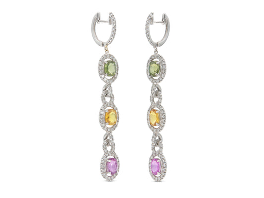 8.33 Carat Multi-Color Sapphire Dangle Earrings with Diamonds