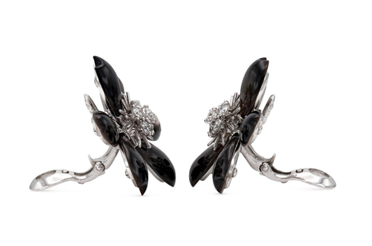 Van Cleef & Arpels Black Mother of Pearl Rose de Noel Earrings
