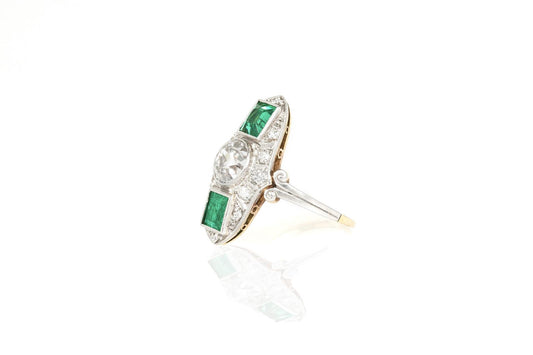 Antique Edwardian 1910s 1.50 Carat Diamond and 1.00 Carat Emerald Dinner Ring