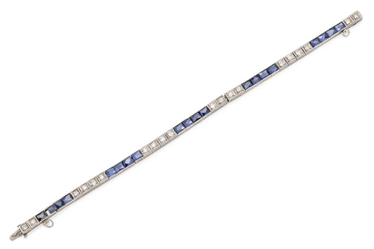 Antique Edwardian 1910s Diamond & Sapphire Line Bracelet