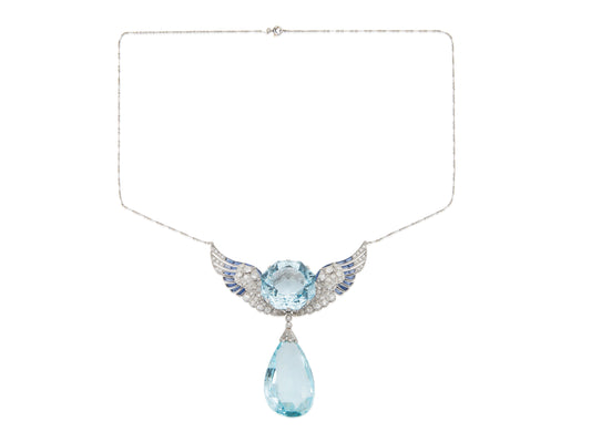 Antique Edwardian 1910s 140.00 Carat Aquamarine Wings Pendant Necklace