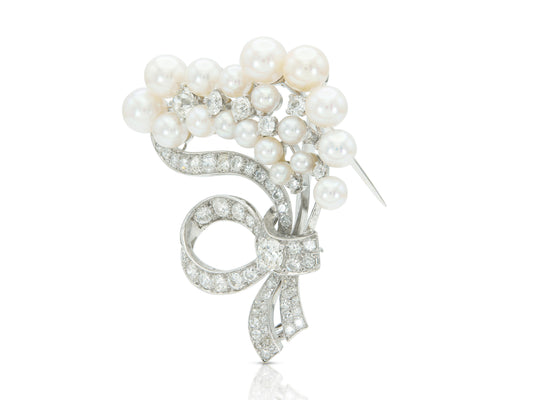 Antique Edwardian 5.00 Carat Diamond and Pearls Brooch