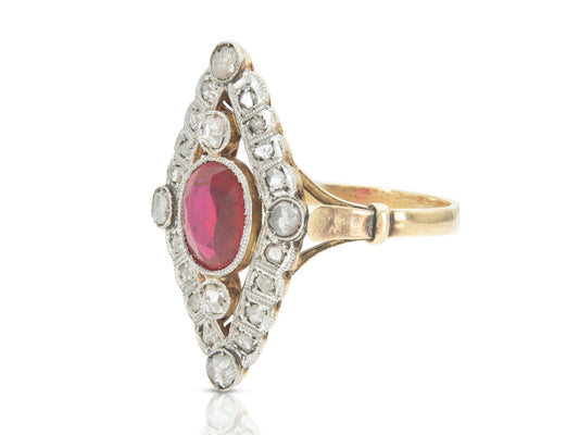 Antique Edwardian 1910s Carnelian and Emerald Dinner Ring with Diamonds