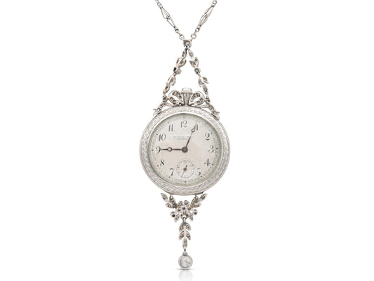 Antique Edwardian 1900s Touchon & Co. Diamond and Pearl Watch Pendant
