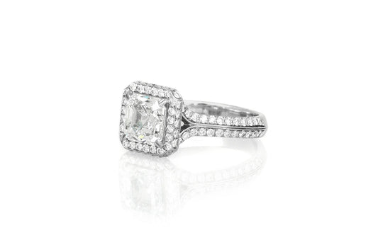2.00 Carat GIA Certified Square Emerald Cut Diamond Engagement Ring with Halo