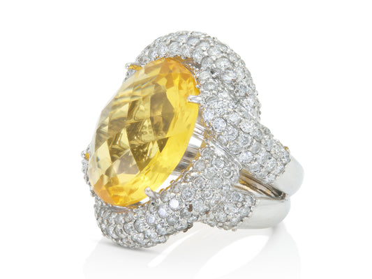 16.91 Carat Oval-Shaped Yellow Quartz Ring with Diamonds