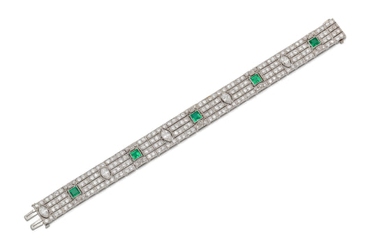 Antique Art Deco 1920s Diamond Bracelet with Emeralds