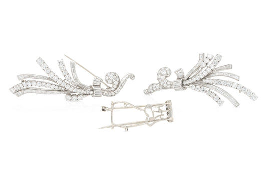 Vintage 1940s 14.00 Carat Diamond Double Clip Brooch