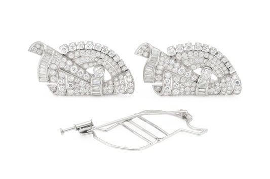 Vintage 1940s 21.00 Carat Diamond Double Clip Brooch