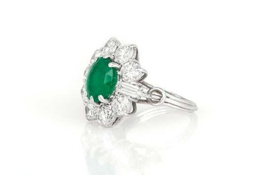 Vintage 1940s 2.50 Carat Emerald & 4.00 Carat Diamond Cluster Ring