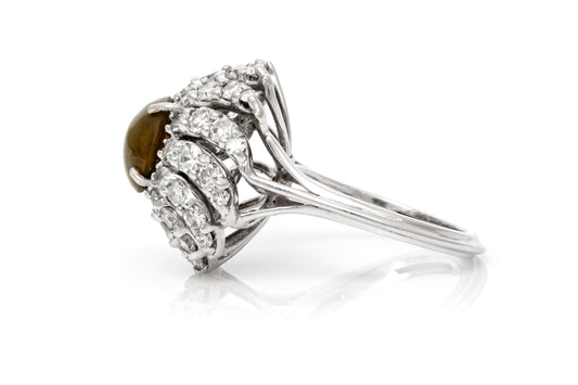 Vintage 1950s 2.50 Carat Cat's Eye and 2.00 Carat Diamond Cocktail Ring