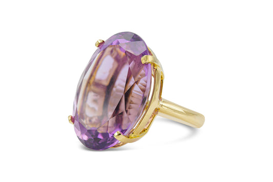 Vintage 1940s Retro 35.00 Carat Oval Cut Amethyst Ring