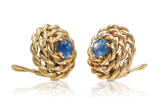 Vintage 1940s Retro Gold Earrings with Cabochon Star Sapphires