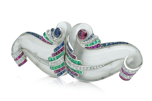 Vintage 1940s Multi-Gem Rock Crystal Double Clip Brooch