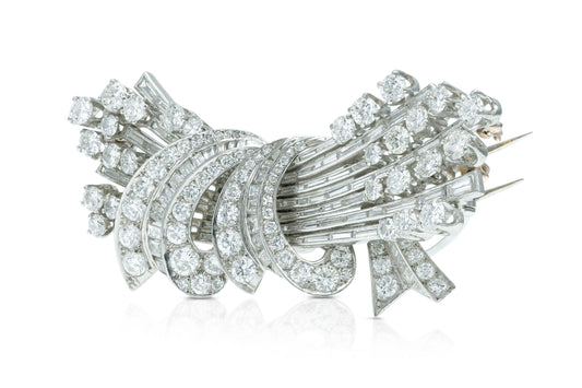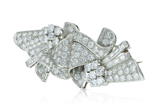 Vintage 1940s 10.00 Carat Diamond Double Clip Brooch
