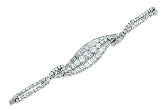 Vintage 1950s 46.75 Carat Round Brilliant and Baguette Cut Diamond Bracelet