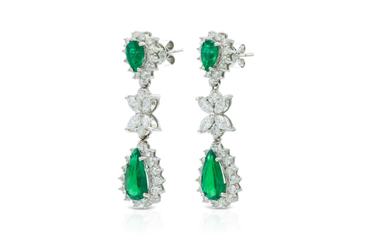 3.50 Carat Pear-Shaped Emeralds & Diamonds Dangle Earrings