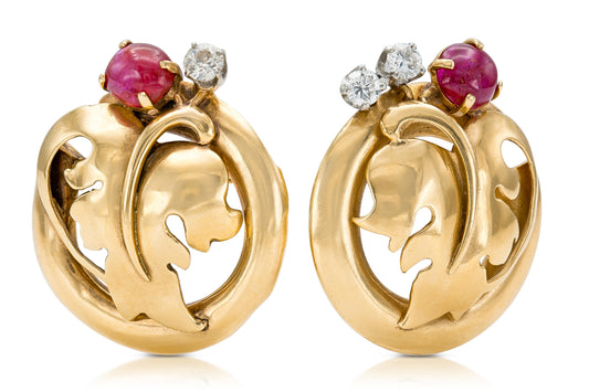 Vintage 1950s David Webb Gold Clutch with 10.00 Carat Ruby and Diamonds