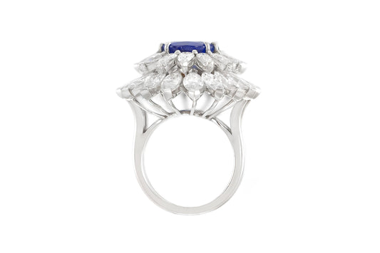 Vintage 1950s 6.63 Carat Kasmir Sapphire and 13.00 Carat Diamond Ring