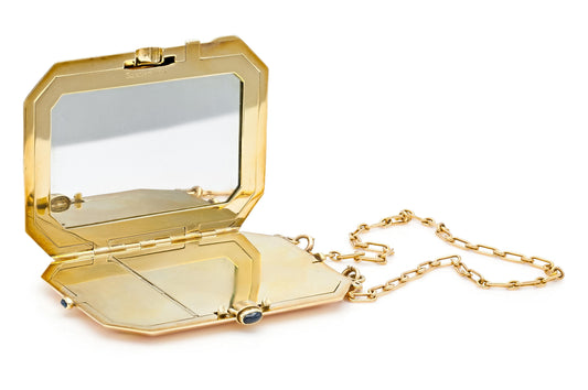 Vintage 1940s Cartier Retro Gold Compact with Sapphires