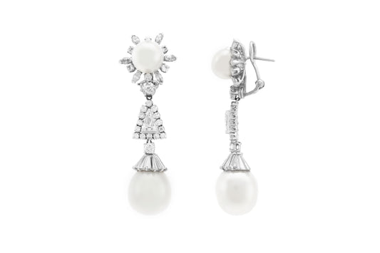 Vintage 1940s South Sea Pearl and Diamond Dangle Earrings
