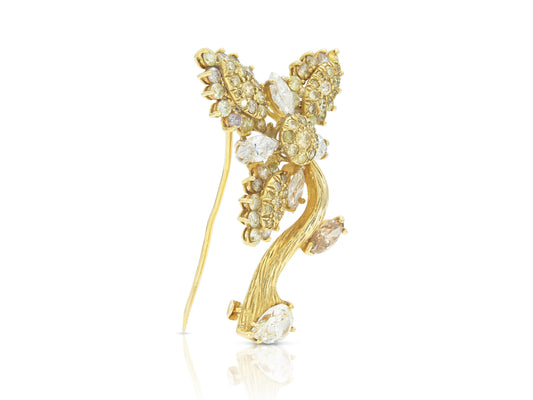 Vintage 1950s 6.00 Carat Yellow and White Diamond Flower Brooch