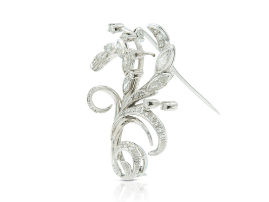 Vintage 1940s Retro 2.50 Carat Diamond Floral Brooch