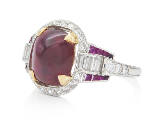 Vintage 1950s 3.23 Carat Cabochon Ruby Ring with Diamonds