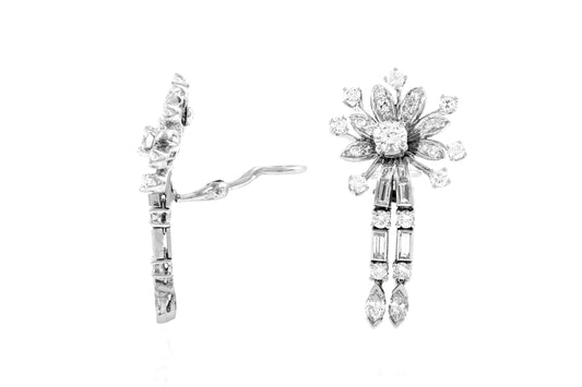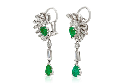 Vintage 1950s 2.00 Carat Emerald and 2.50 Carat Diamond Dangle Earrings