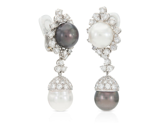 Vintage 1950s Salt & Pepper Peal Dangle Earrings