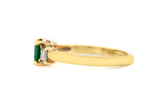 Vintage 1950s 0.60 Carat Emerald Cut Emerald Ring with Diamonds