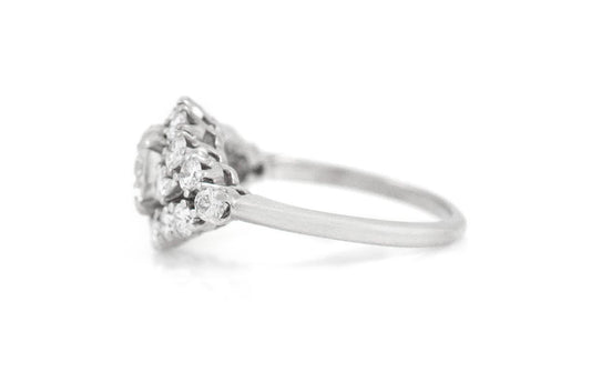 Vintage 1950s 0.45 Carat Square Cut Emerald Ring with Diamonds