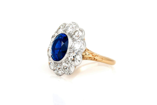 5.48 Carat Oval Cut Sapphire & 3.30 Carat Diamond Cluster Ring