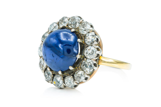 8.43 Carat Cabochon Sapphire & 4.23 Carat Diamond Cluster Ring