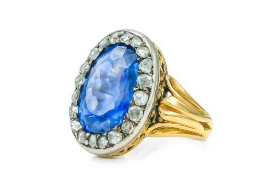 Antique Victorian 10.00 Carat Oval Cut Sapphire Ring with Diamonds