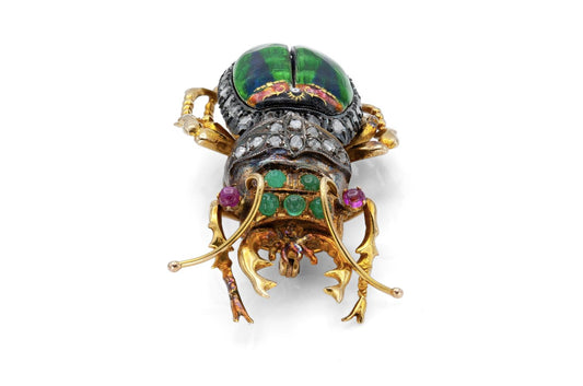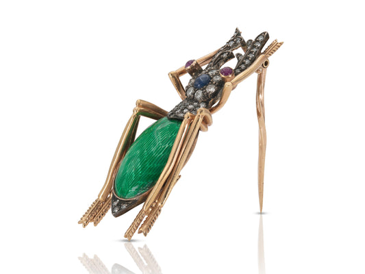 Antique Victorian Red Spinel Bug and Sword Stick Pin with Sapphire and Diamonds
