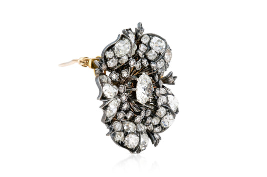 Antique Victorian 7.60 Carat Diamond Flower Brooch