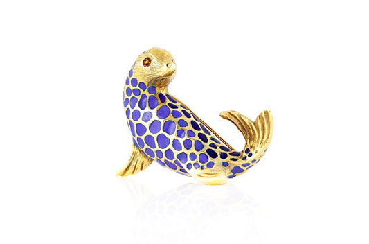 Vintage 1970s Blue Enamel Seal Brooch