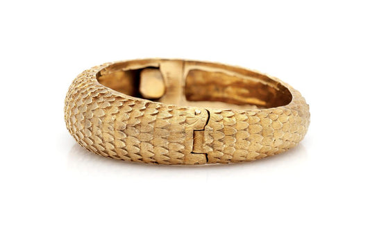 Vintage 1960s Gold Dragon Scales Hinged Bangle Bracelet