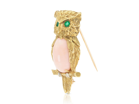 Vintage 1960s Van Cleef & Arpels Coral Owl Brooch