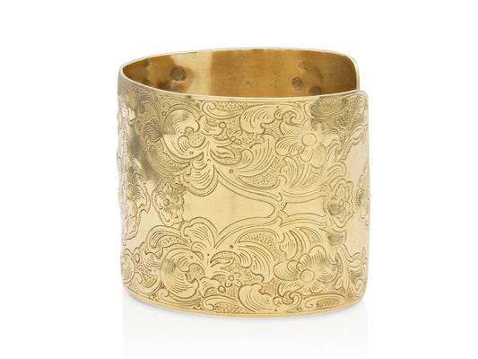 Vintage 1960s Gold Floral Engraved Wide Cuff Bracelet