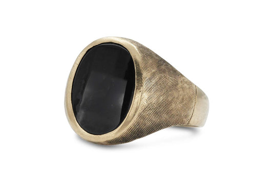 Vintage 1980s Scratched Gold Black Onyx Signet Ring