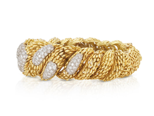 Vintage 1970s Hammerman Brothers Gold and Diamond Twist Bracelet